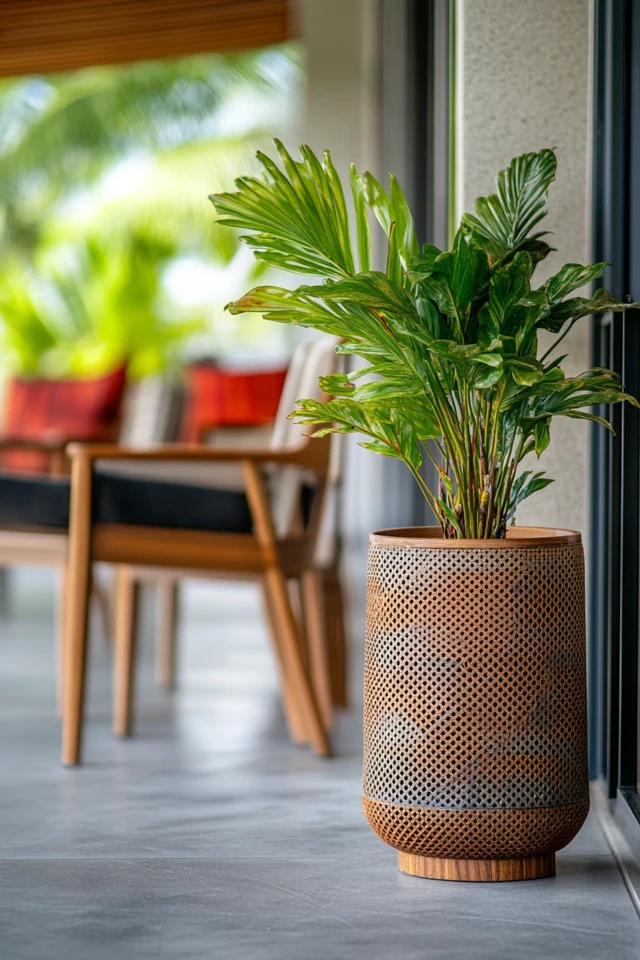 - Pair smooth planters with rougher materials like concrete or stone for visual contrast.