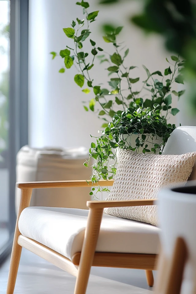 Hanging plants add greenery without taking up valuable floor or surface space, making them ideal for minimalist decor.