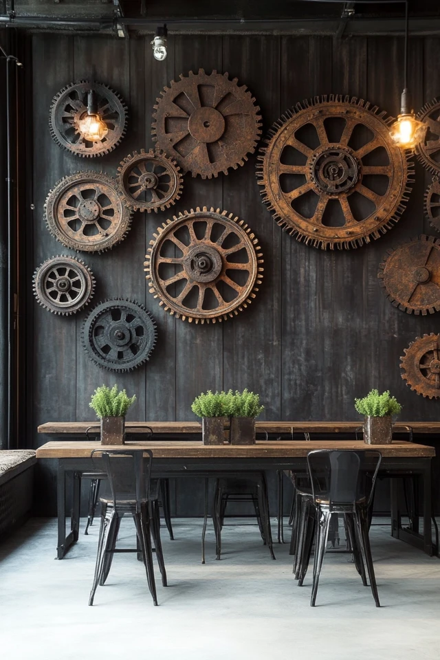 - Weathered and rusted gears bring a sense of history and authenticity to industrial interiors.