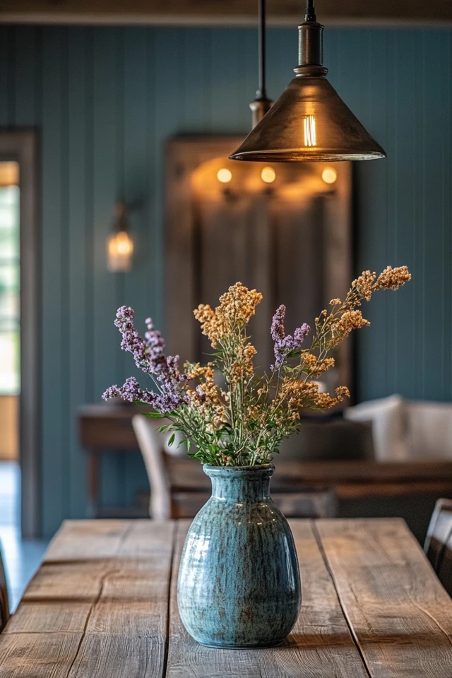 - Chandelier or Flush Mount: Add a small, rustic chandelier or a flush mount with a distressed finish for ambient lighting.