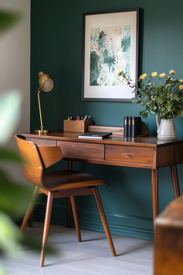 - Choose a desk with clean lines and a rich wood finish. Look for features like tapered legs or brass hardware for an authentic mid-century vibe. A desk size of 48-60 inches wide works well for most home offices.