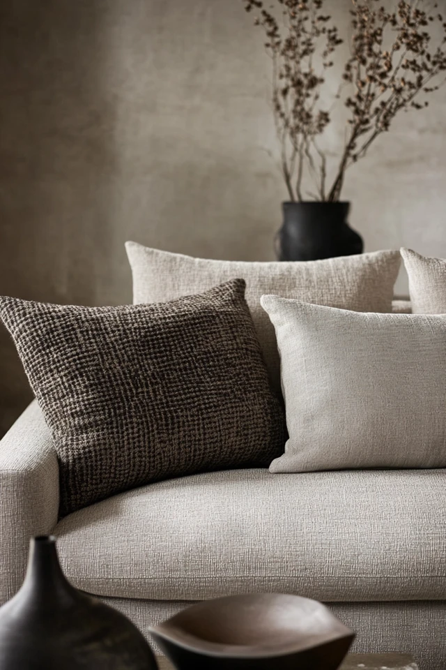 - Use pillows in varying textures, such as linen, velvet, or woven fabrics, to create depth.