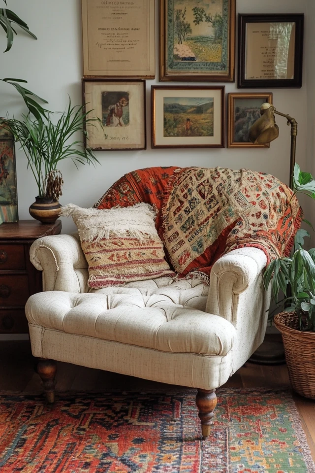 Creating a vintage bohemian space is about mixing well-loved treasures with boho charm to craft a room that feels soulful, layered, and uniquely yours. By incorporating thrifted finds, you can achieve a stylish and budget-friendly boho design that celebrates sustainability, individuality, and history.