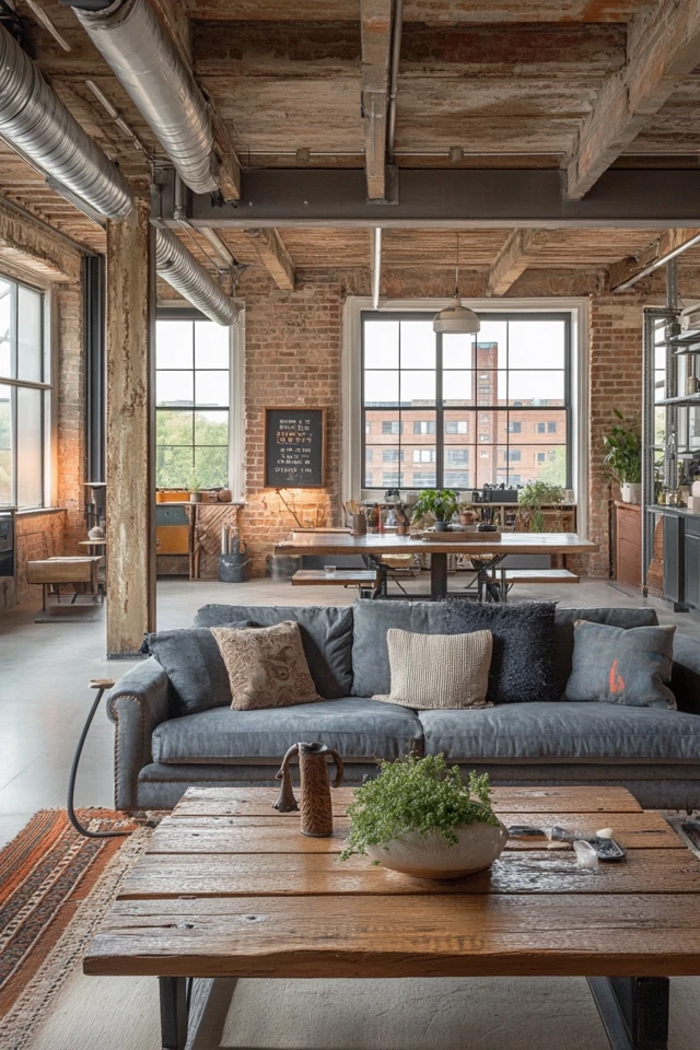 Exposed brick, concrete, and steel give industrial lofts their signature rugged aesthetic.