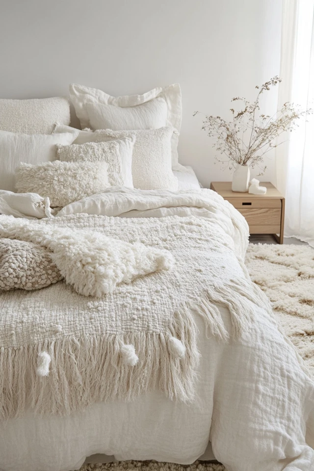 - Why It Works: Layering textures is key to adding depth and warmth to a monochromatic space.