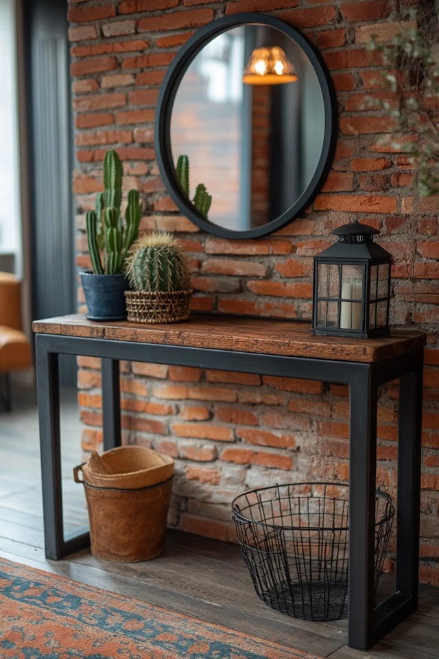 - Console Table: Opt for a wood-and-metal console with clean lines.