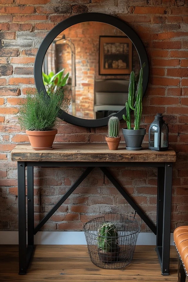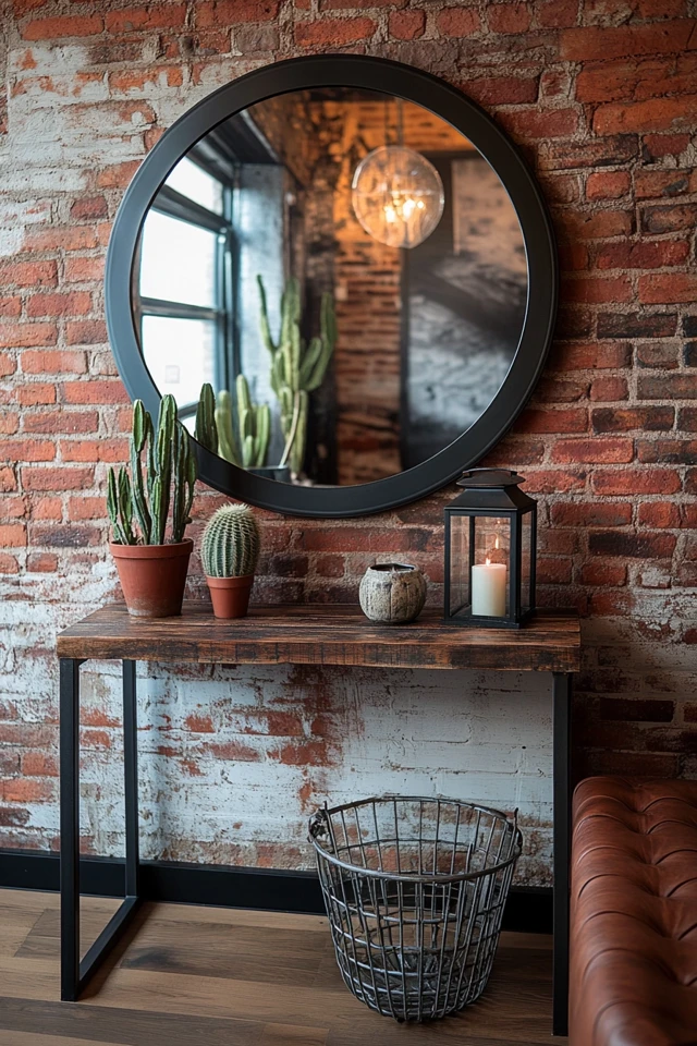 - Exposed Brick Walls: A statement backdrop for an industrial entryway.