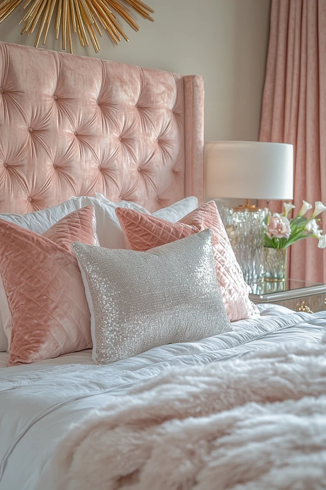 A glam bed shines when it incorporates textures that add depth and luxury. Combining smooth, soft, and reflective surfaces creates a layered, sophisticated aesthetic.