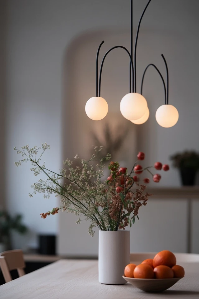 - Example: A cluster of glass globe pendants in varying sizes adds a touch of whimsy to a neutral dining room.