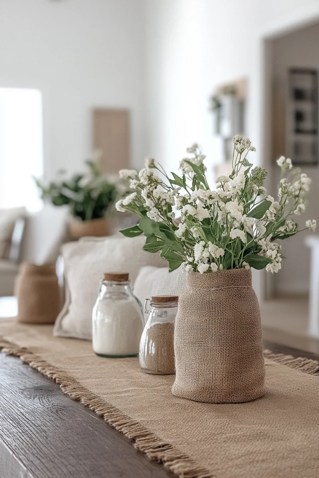 - Layered Textures: Show how burlap works with other materials in your farmhouse design.