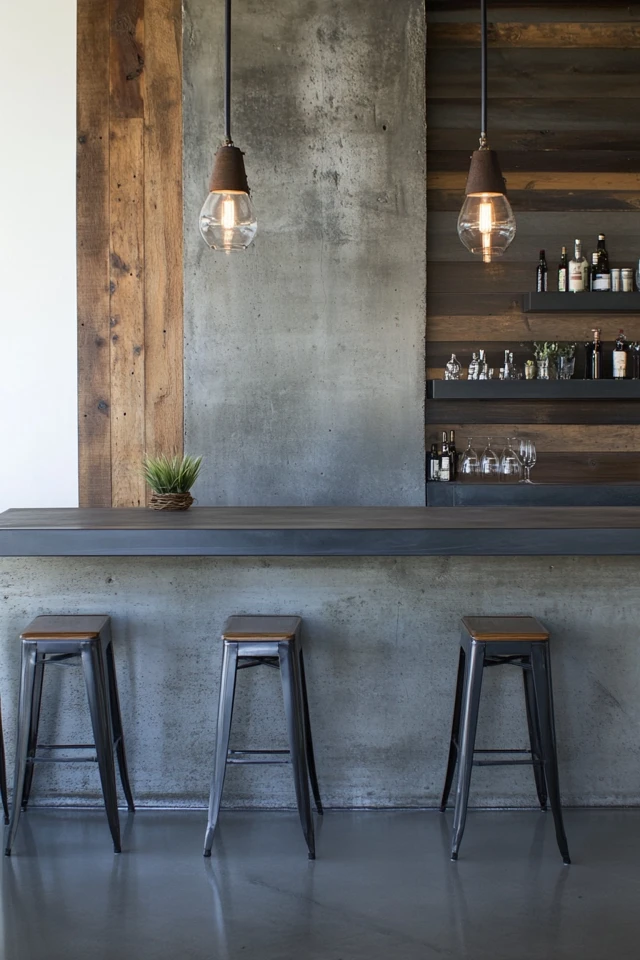 Concrete and wood create industrial harmony because they complement each other’s strengths and counterbalance their weaknesses. Here’s why this pairing works so beautifully: