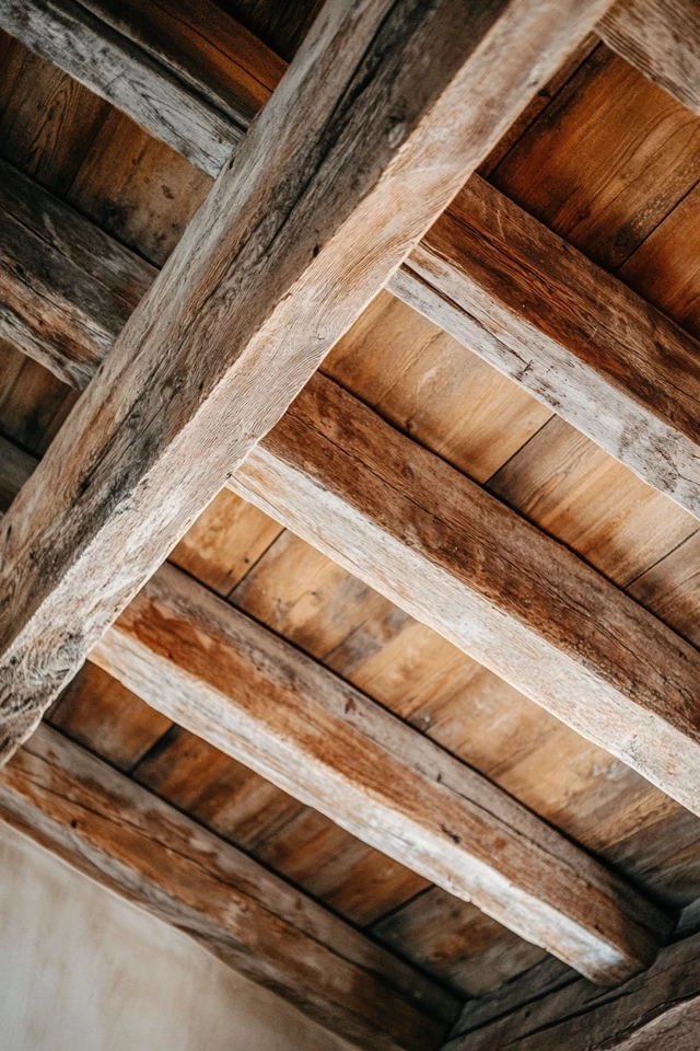 - Rustic Farmhouse Beams: Use rough-hewn reclaimed wood for a natural, weathered look.