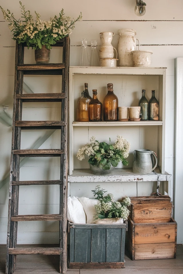 - Why It Works: Ladders combine practicality with rustic charm, making them a farmhouse favorite.