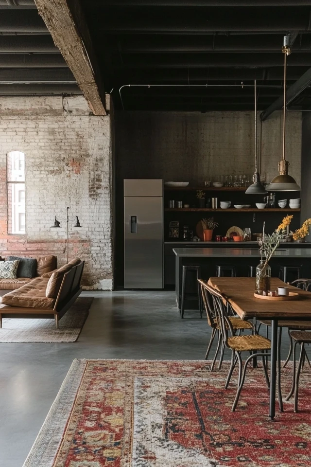 - Dining Areas: Place a large dining table with industrial chairs in a central location to anchor the space.