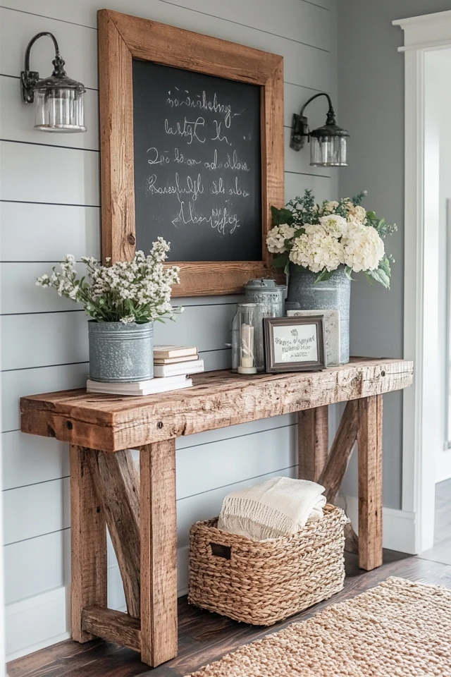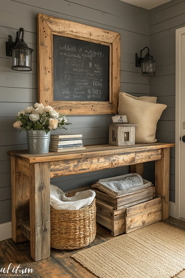- Wall Decor: Frame artwork, chalkboards, or photos with reclaimed wood to create a warm gallery wall.