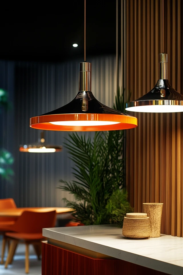 - Choose finishes like brass or black metal to complement the warm wood tones of mid-century furniture.