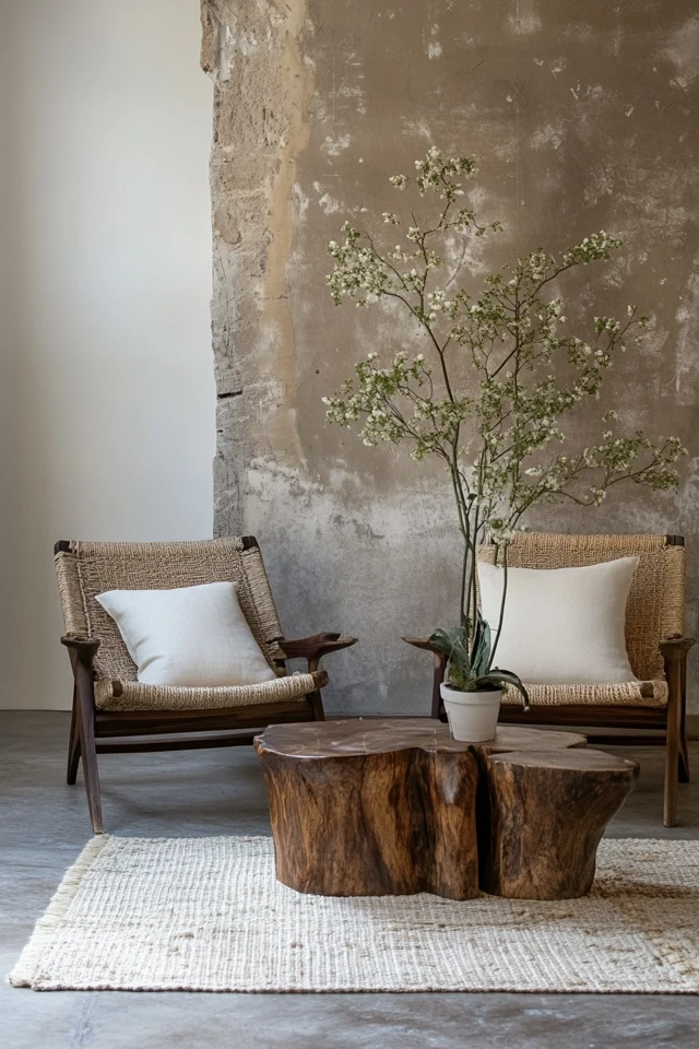 I fell in love with this concept while redecorating my dining room. Adding a live-edge wood table and a cluster of greenery instantly transformed the space into a relaxing haven. I even went a step further, incorporating natural textiles and stone elements. The effect was stunning—an earthy yet modern look that felt like a breath of fresh air.