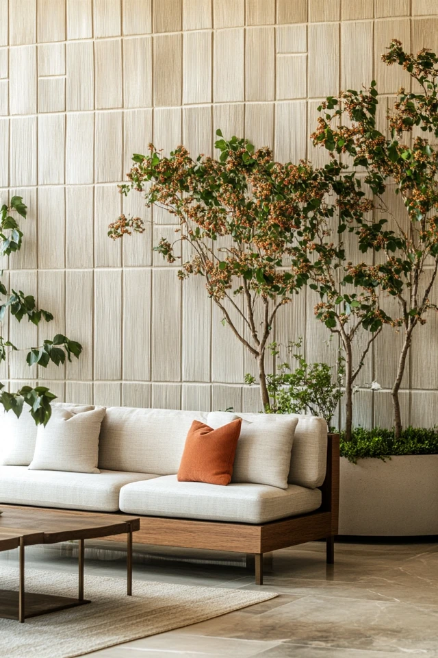 Fabrics like linen, cotton, and wool bring softness and comfort while connecting the room to nature.