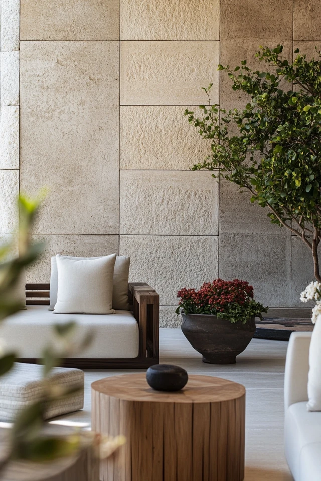 Wood adds warmth and texture, creating a grounding and timeless aesthetic.