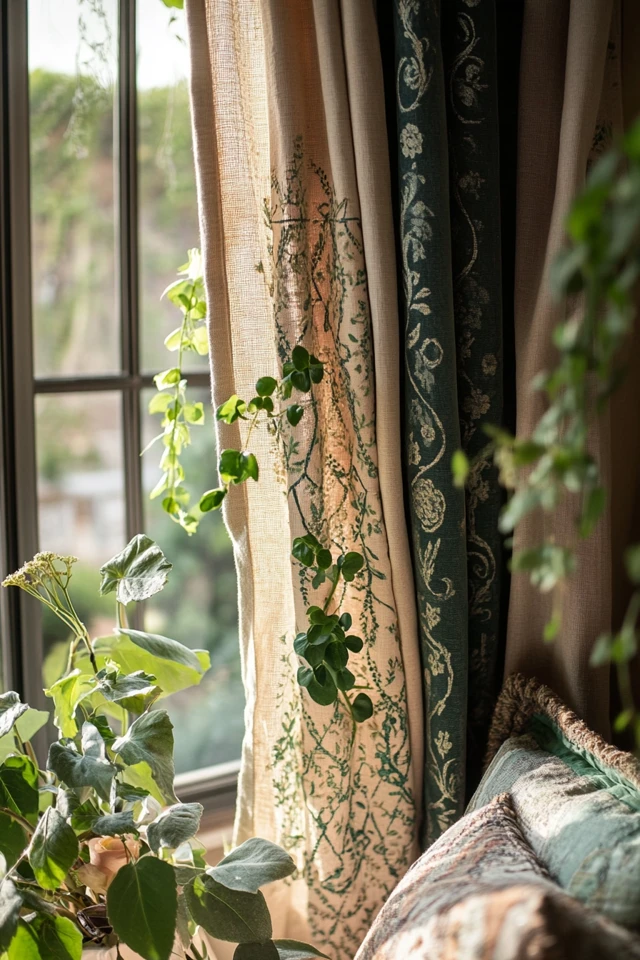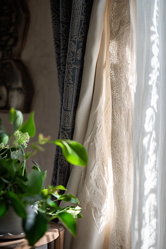 Layered curtains are perfect for anyone who wants to combine functionality with bohemian flair. Imagine soft, sheer panels that let sunlight filter through, paired with rich, patterned outer drapes that add drama and personality. The result is a space that feels effortless yet intentionally designed.