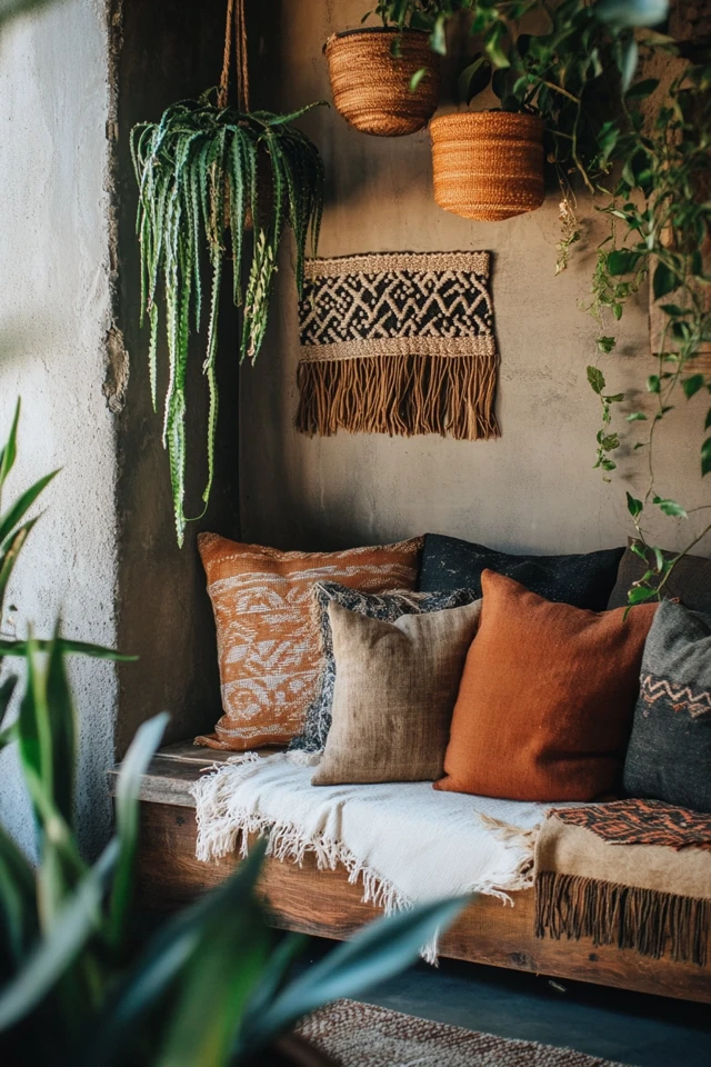 - Add throws and cushions made from natural fabrics like linen, cotton, or wool. Look for pieces with fringe, tassels, or handwoven details for a boho touch.
