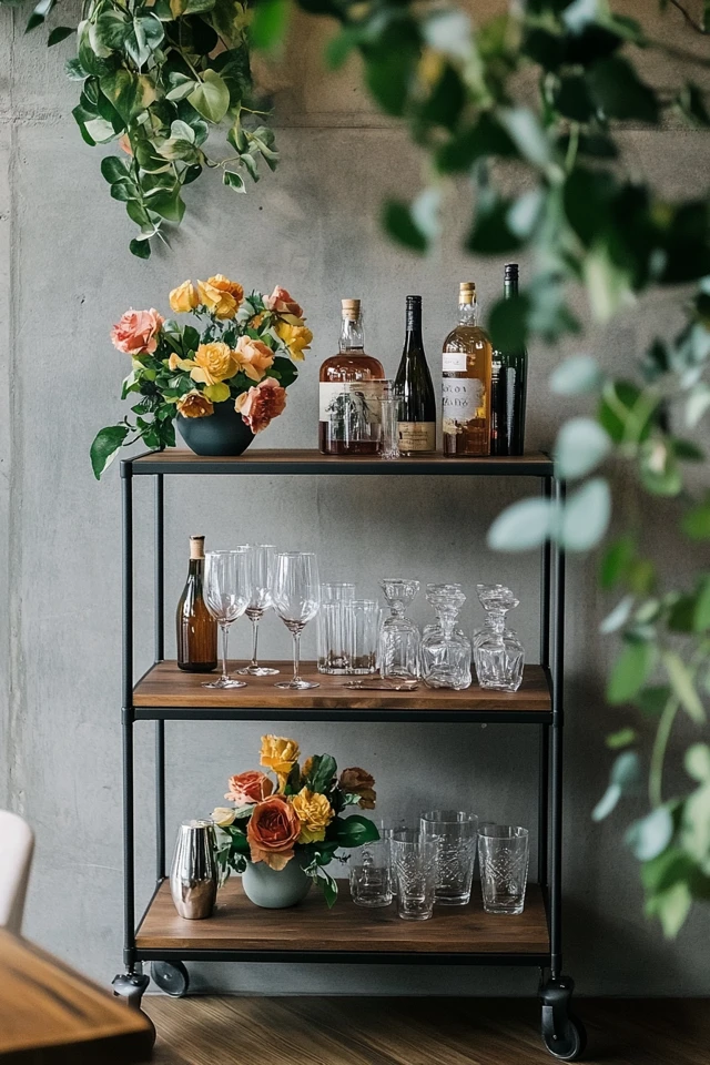 Your bar cart becomes the star of the show, allowing guests to mix their own drinks with ease.