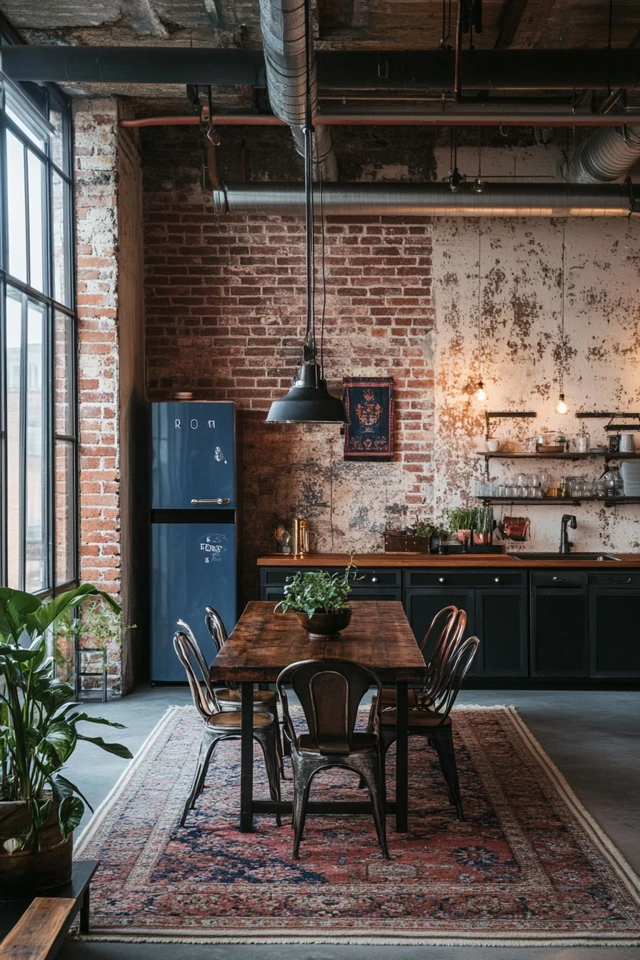- Add plants, woven textures, and colorful accents to bring a bohemian touch to industrial decor.