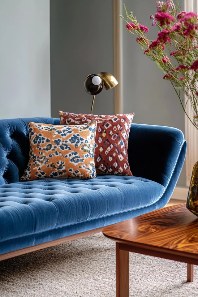 - Use geometric patterns or solid colors that complement your sofa.