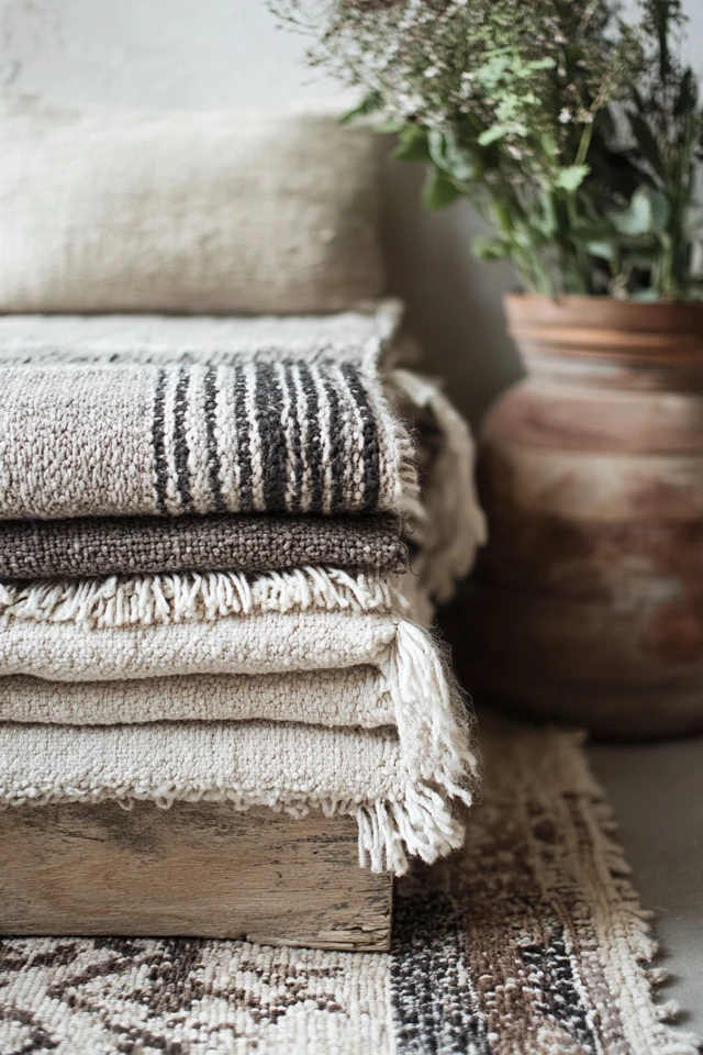 - Layered Textures: Textural elements—like woven rugs, knitted throws, and macramé accents—add depth and interest without relying on bold colors or patterns.