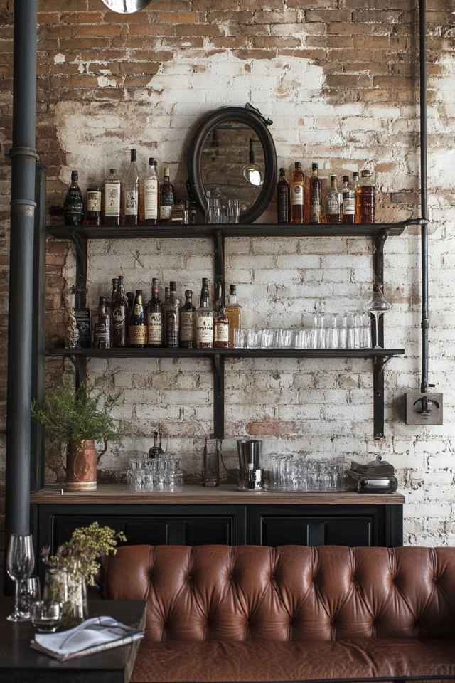- Add industrial-style pendant lights, sconces, or chandeliers with metallic shades.