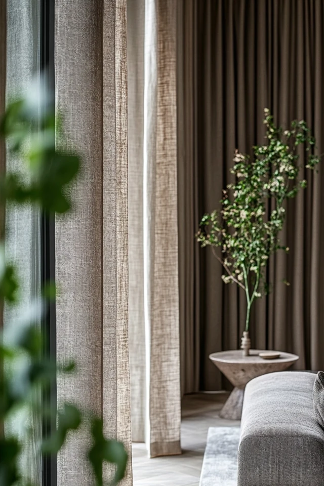 - For Light Control: Use light-filtering fabrics like linen or sheer curtains in living rooms or kitchens.
