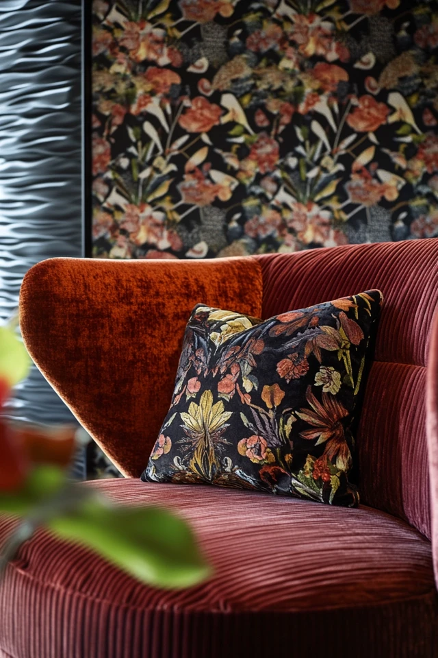 - Mix types: Combine different styles, such as an organic floral with a structured stripe, to keep things interesting.