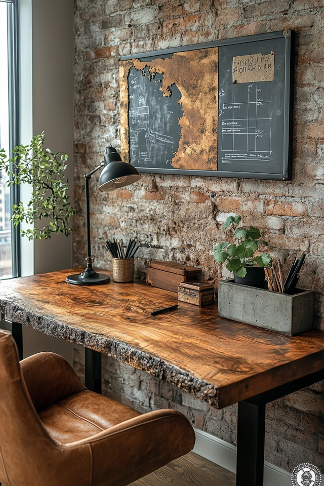 The industrial aesthetic celebrates the beauty of raw, unfinished materials. Incorporating these textures will give your home office depth and authenticity.