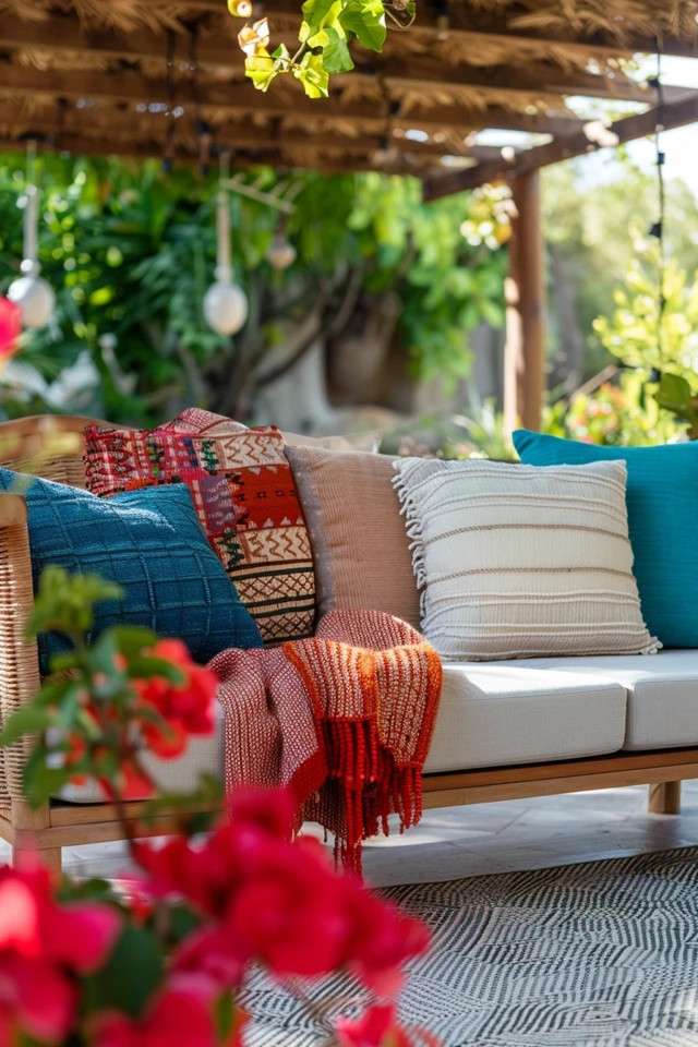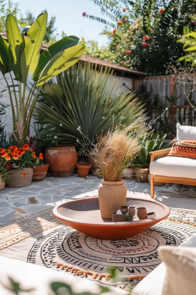 Plants and natural elements are crucial to achieving a bohemian look. They bring life, color, and a sense of tranquility to your outdoor space.