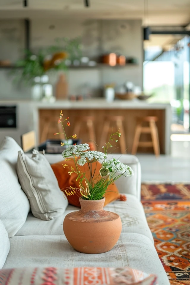 One of the standout trends in bohemian decor for 2024 is the emphasis on natural elements. This trend focuses on bringing the outdoors in, creating spaces that are serene, earthy, and connected to nature.